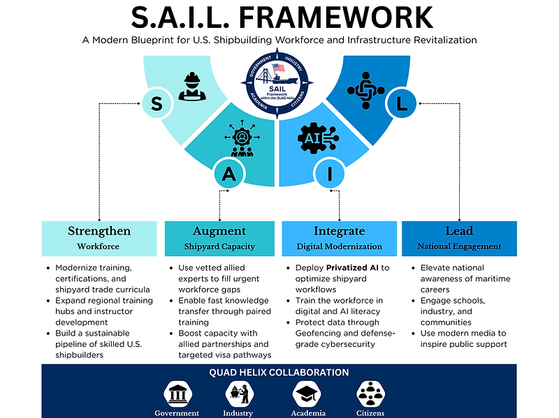 The Smart Development Institute (SDI) presents the Shipbuild Talent Hub, a turnkey national workforce solution aligned with the S.A.I.L Framework. This model addresses immediate labor shortages, accelerates training capacity, and powers digital transformation across U.S. shipyards.